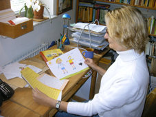 Wenn mir nichts mehr einfällt, so ungefähr nach drei Stunden, setze ich mich erst mal hin und beantworte meine Post, und das ist meistens eine ganze Menge. Ich bekomme nämlich viele nette Briefe von Kindern, und was ich am schönsten finde: Ganz oft malen sie sogar Bilder dazu. Da freue ich mich dann besonders, weil ich selbst leider nur ganz schlecht zeichnen kann. Darum staune ich immer, wie gut viele Kinder das können.
